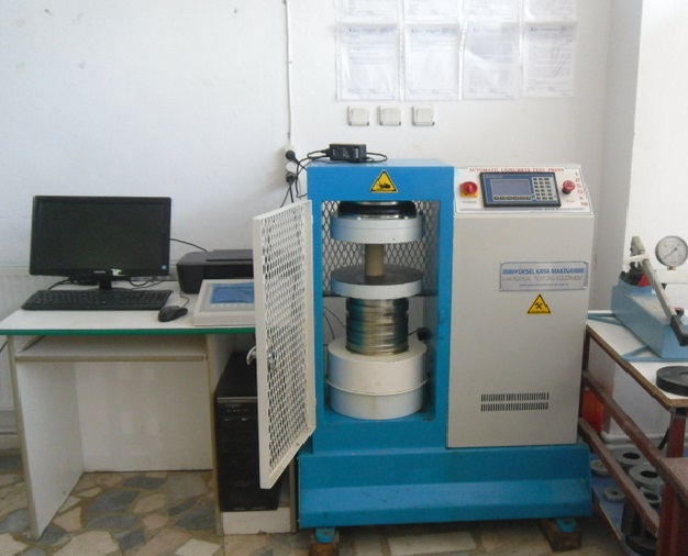 Silindirik kayaç numunelerinin üç eksenli yükleme ile dayanımlarının tayinine iliskin deneydir. Kayaların degisik yanal basınçlar