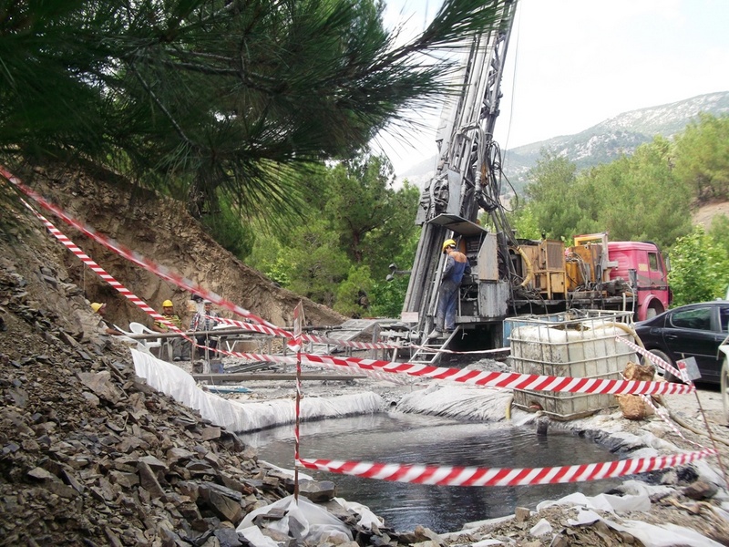 HQ, NQ, PQ çaplarda karotiyer ile, gerektiğinde ters sirkülasyonlu, sığ ve derin (600m), rezerv analizi, kimyasal analiz için numune alma ve maden ruhsatına yönelik, sondajlar gerçekleştirilmektedir.